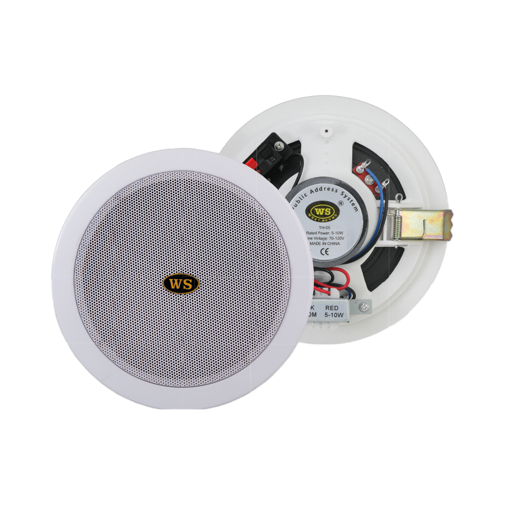 ► Haut-parleur de plafond de 5" (73 CM). ► Transformateur 5-l0W/l00V. ► Sensibilité : 93 Db (+-3dB) ► Fréquence de fonctionnement : lO0Hz-lSKhz ► Diamètre extérieur du haut-parleur 19 cm. ► Diamètre du trou du haut-parleur 15 cm. ► Le boîtier en ABS est perforé en métal. ► Montage : Montage mural ► Dimensions : 180 x 60 (mm) ► Poids : 0,6 kg