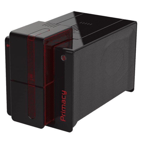 Description de Primacy Black Edition Recto Verso Le Pack Primacy Black Edition comprends : - Une imprimante Primacy Duplex (recto/verso) habillée de rouge et de noir laqué avec un bel effet carbone sur les flancs. - 1 ruban YMCKO-K permettant l'impression de 200 cartes) - 100 cartes PVC (que nous portons à 200) - 1 licence CardPresso XS à l'aquelle nous ajoutons une licence eMedia Card Designer Standard