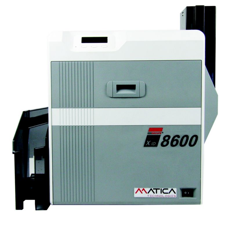Caractéristiques principales Imprimante retransfert MATICA 8600 Marque MATICA Simple ou double faces Simple Face Volume d'impression attendu + de 10 000 cartes par an Résolution (en dpi) 600 Technologie d'impression Retransfert Couleurs ou monochrome Couleur Vitesse d'impression couleur en YMCKO (nb face / H) 120 Capacité chargeur (nb de cartes d'épaisseur 0,76 mm) 200 Bac de sortie (nb de cartes d'épaisseur 0,76 mm) 100
